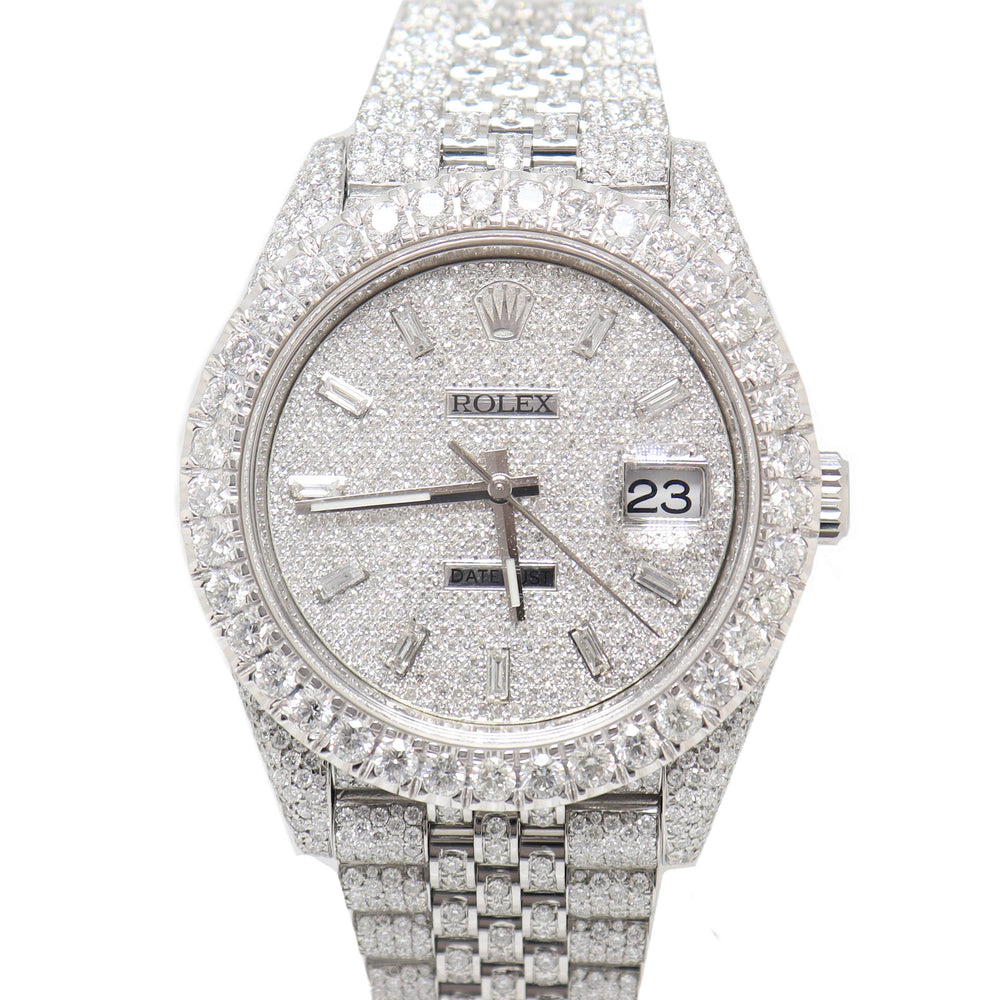 Rolex Mens Datejust Iced Out Stainless Steel 41mm Custom Pave Diamond Dial Watch Reference# 126300