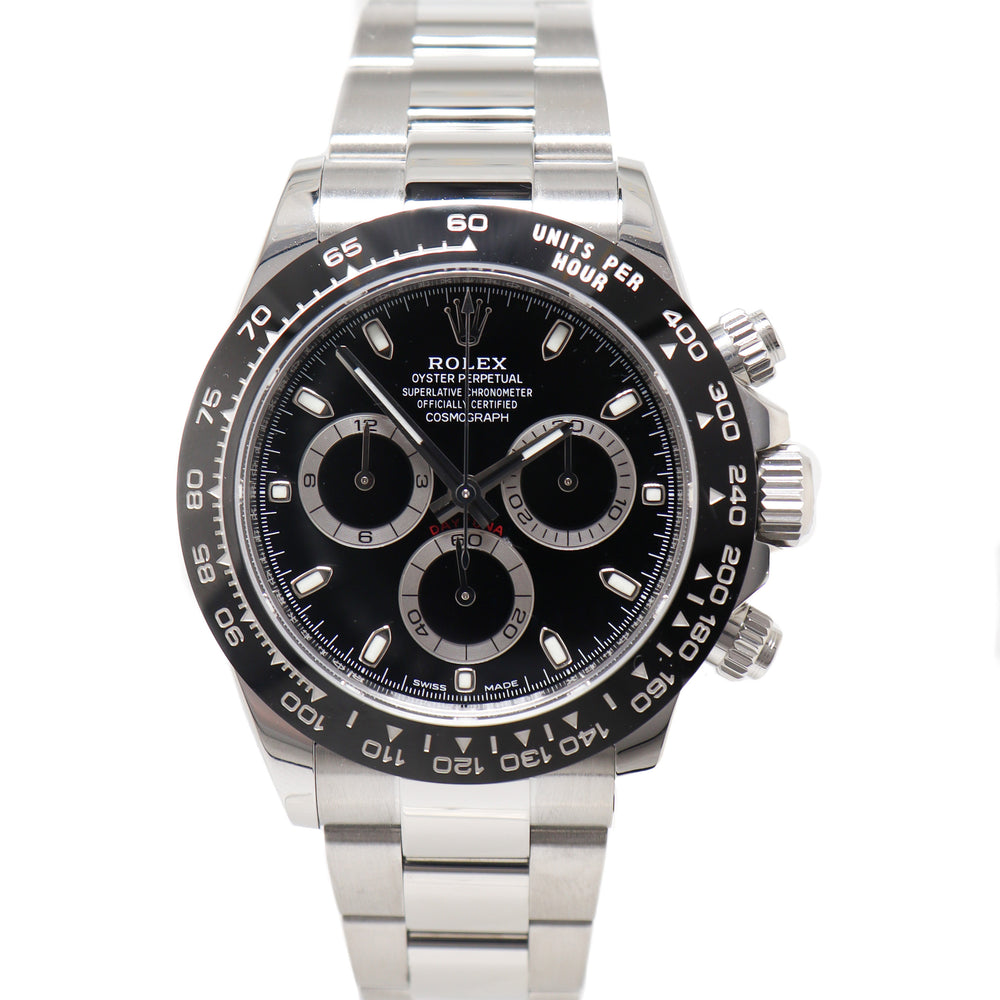 Rolex Men's Daytona Stainless Steel 40mm Black Chronograph Dial Watch Reference# 116500
