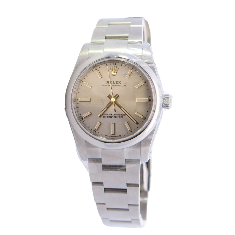 Rolex Oyster Perpetual Stainless Steel 34mm Silver Stick Dial Watch Ref# 124200