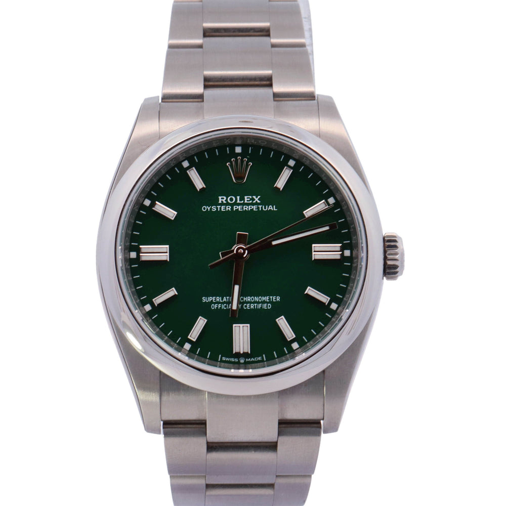 Rolex Oyster Perpetual Stainless Steel 36mm Green Stick Dial Watch Reference# 126000