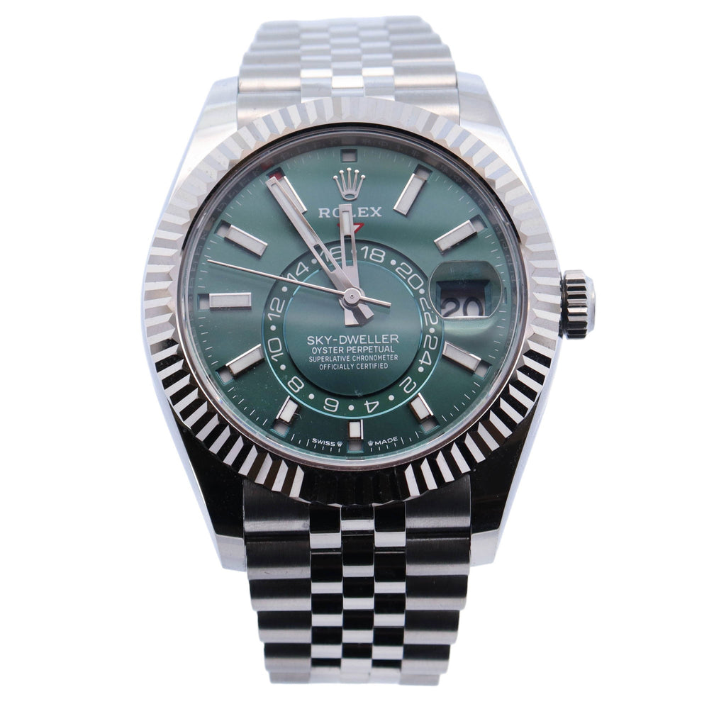Rolex Sky-Dweller Stainless Steel 42mm Olive Green Stick Dial Watch Reference# 336934