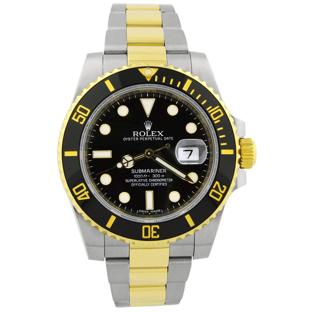 Rolex Submariner Two Tone Stainless Steel & Yellow Gold 40mm Black Dot Dial Watch Reference #: 116613LN